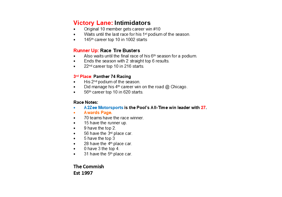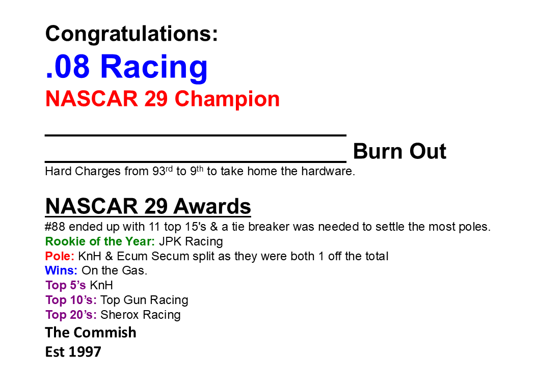 Nascar Championship Race Results